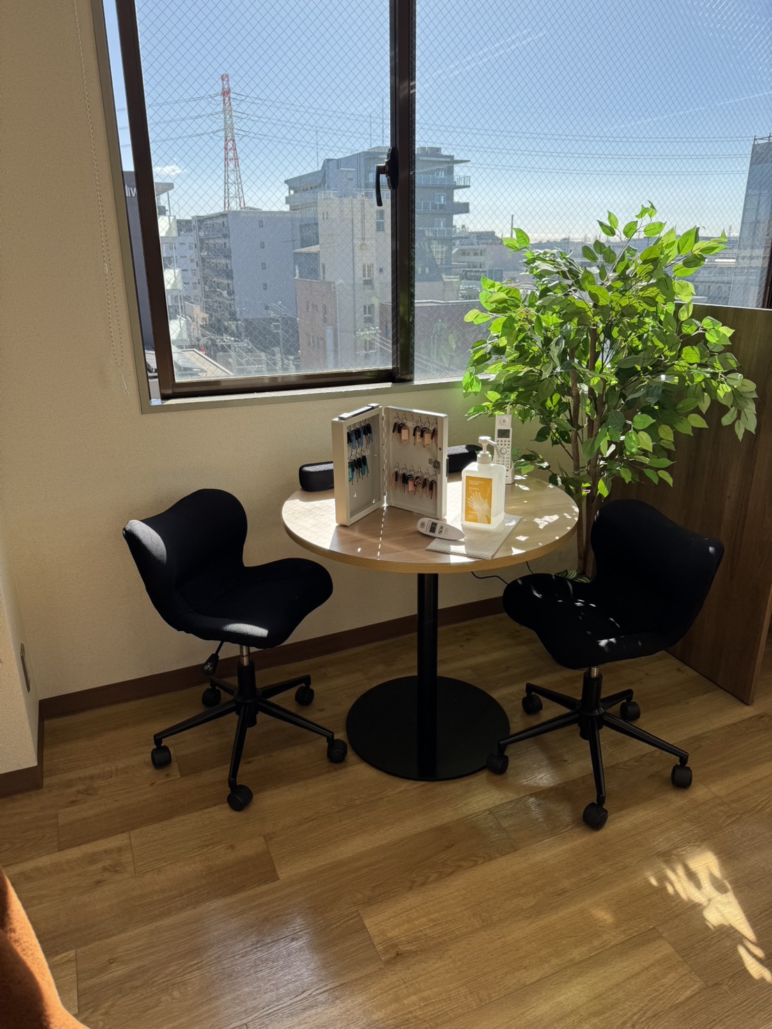 今までは特に何も置いていなかったのですが、関係機関の方や、体験を同行された方が待機できるようカフェスペースにしました!